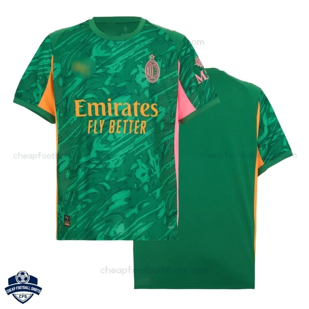 Authentic Design: Features a bold green base with orange and pink accents, the iconic AC Milan crest, delivering an authentic goalkeeper look at a great price.
