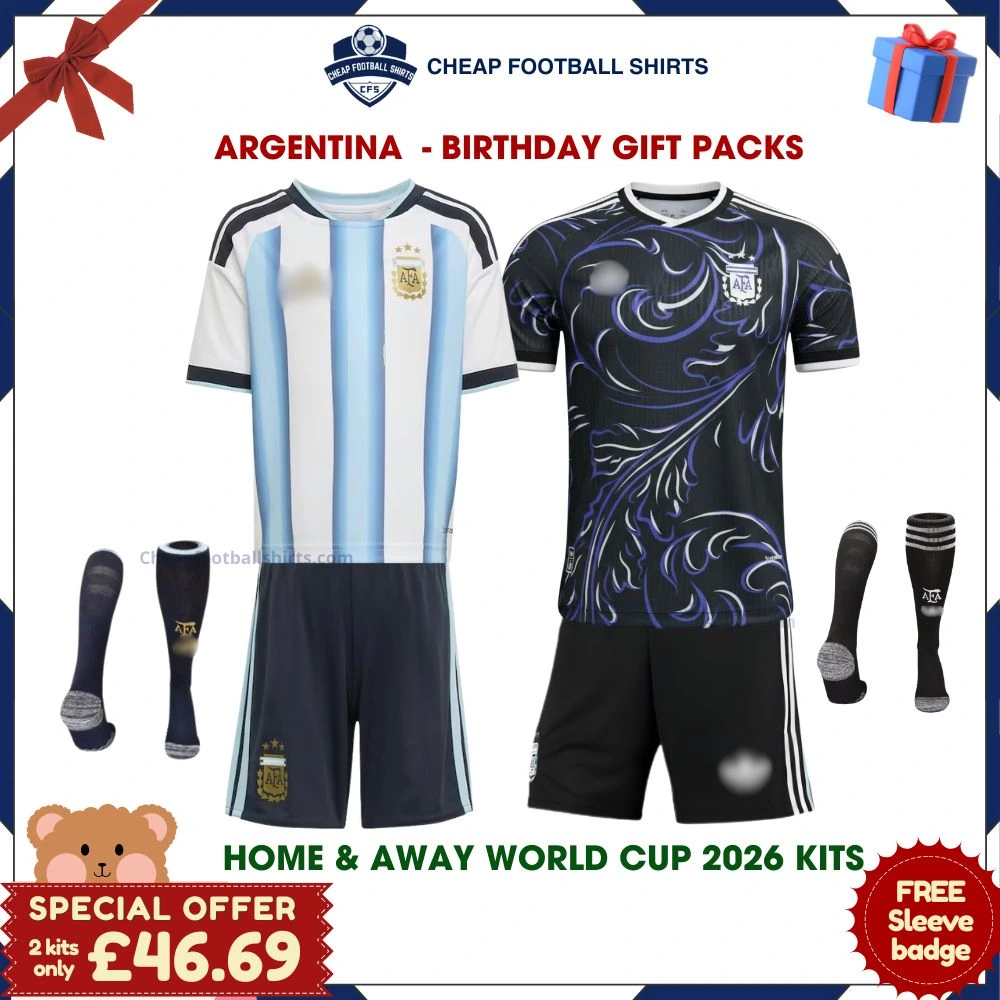 Celebrate your Argentina pride with the Argentina World Cup 2026 Gift Pack – Home and Away Kids Cheap Football Kits.