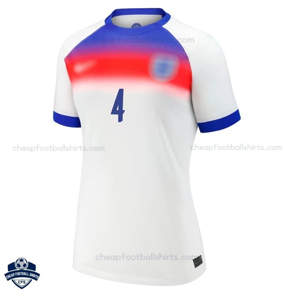 Authentic Design: Features the iconic Three Lions crest, and a crisp white shirt with bold red and blue gradient accents, capturing the true England home kit spirit at a budget-friendly price.